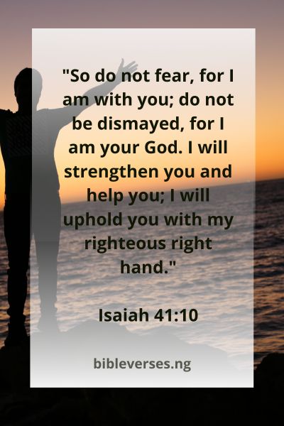 “So do not fear, for I am with you; do not be dismayed, for I am your God. I will strengthen you and help you; I will uphold you with my righteous right hand.”