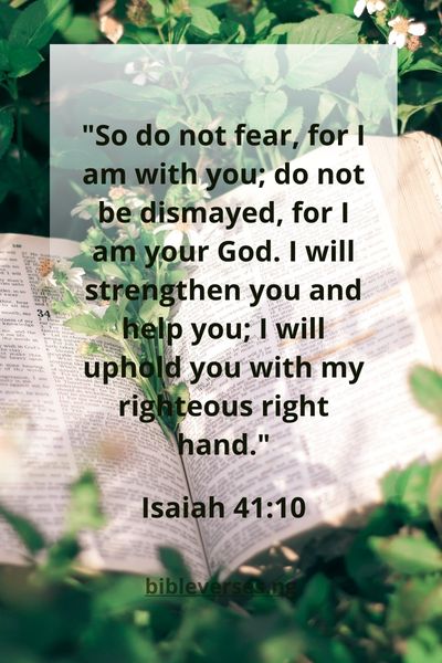 “So do not fear, for I am with you; do not be dismayed, for I am your God. I will strengthen you and help you; I will uphold you with my righteous right hand.”