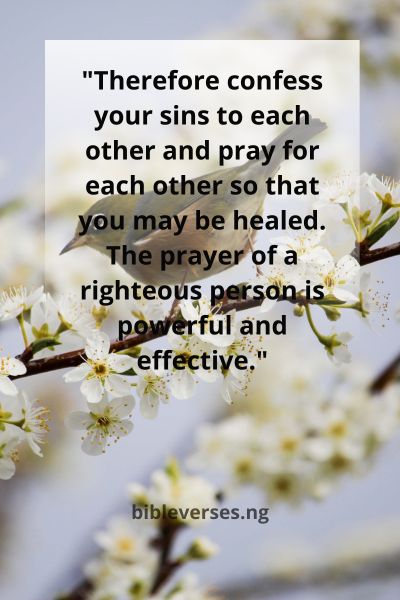 “Therefore confess your sins to each other and pray for each other so that you may be healed. The prayer of a righteous person is powerful and effective.”