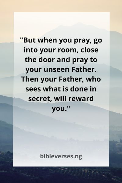 “But when you pray, go into your room, close the door and pray to your unseen Father. Then your Father, who sees what is done in secret, will reward you.”